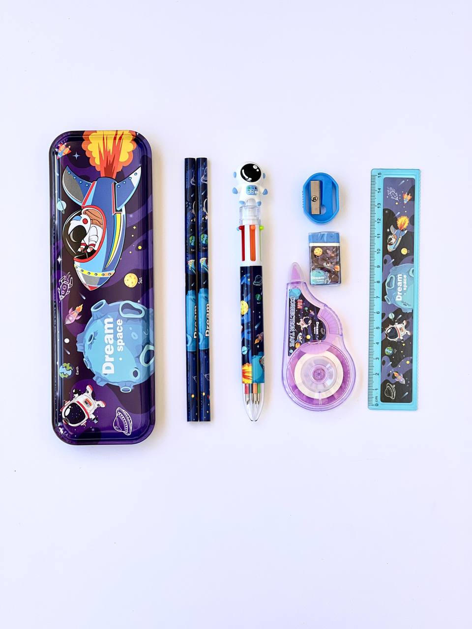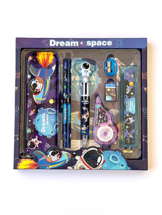 ست هشت تیکه لوازم تحریر فضانورد مناسب برای کودکان و نوجوانان میباشد. همچنین با بستهبندی باکیفیت و عالی گزینهای مناسب برای کادو میباشد. این ست شامل موارد زیر است: