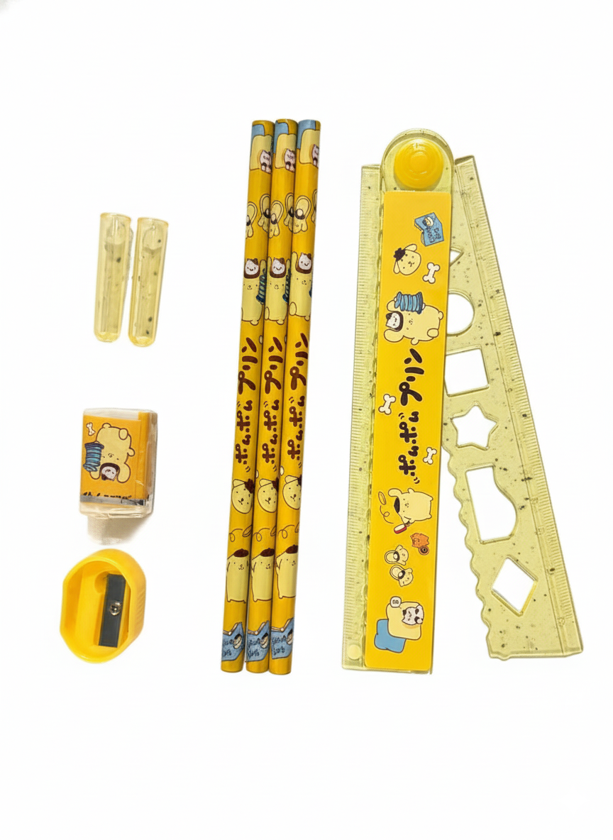 ست هفت تیکه لوازم تحریر پوم پورین مناسب برای کودکان و نوجوانان میباشد. همچنین با بستهبندی باکیفیت و عالی گزینهای مناسب برای کادو میباشد. این ست شامل موارد زیر است: